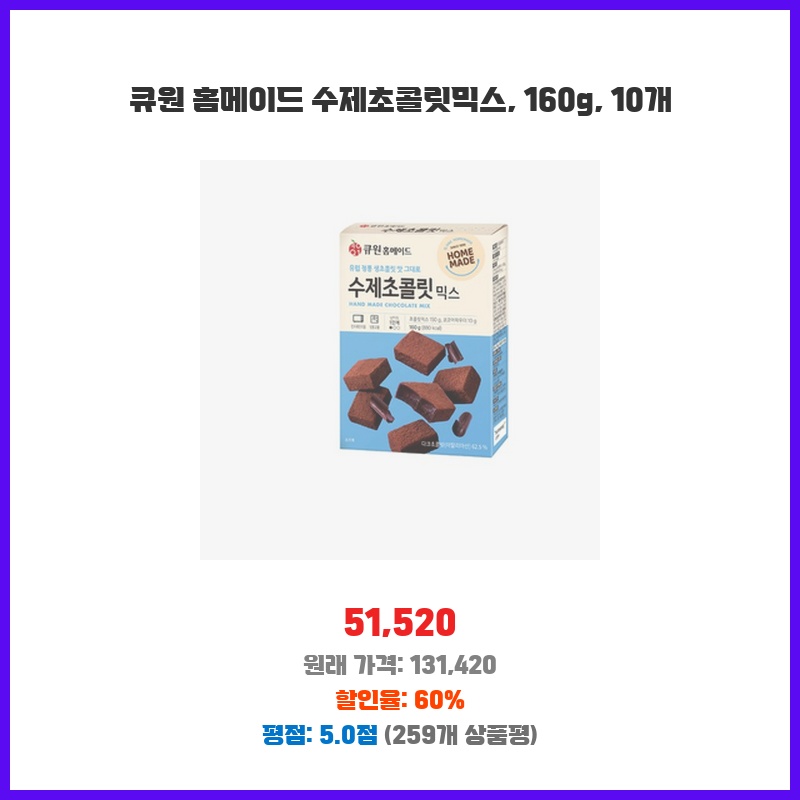 큐원 홈메이드 수제초콜릿믹스, 160g, 10개