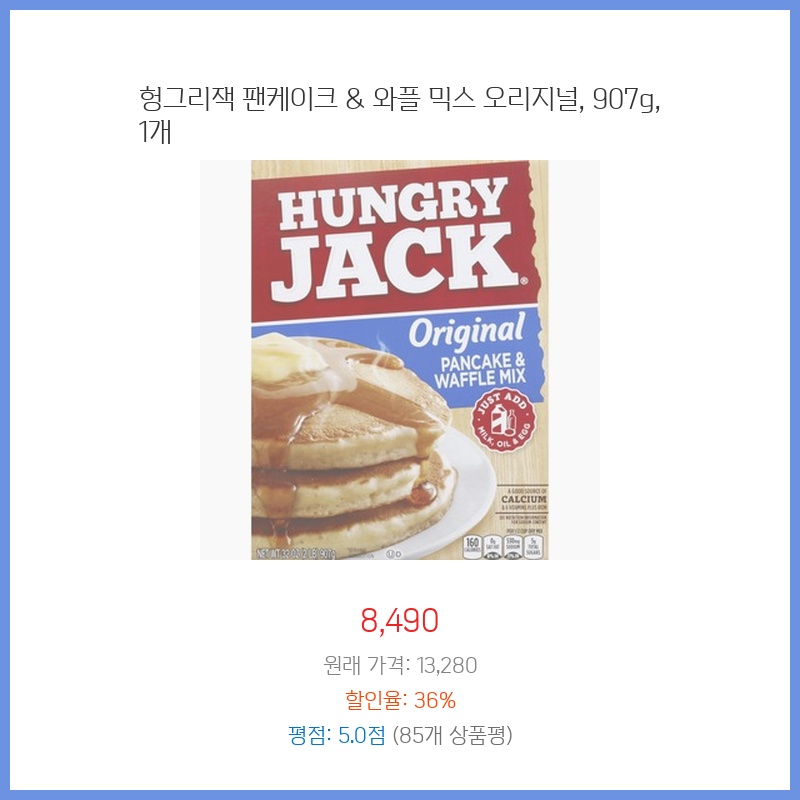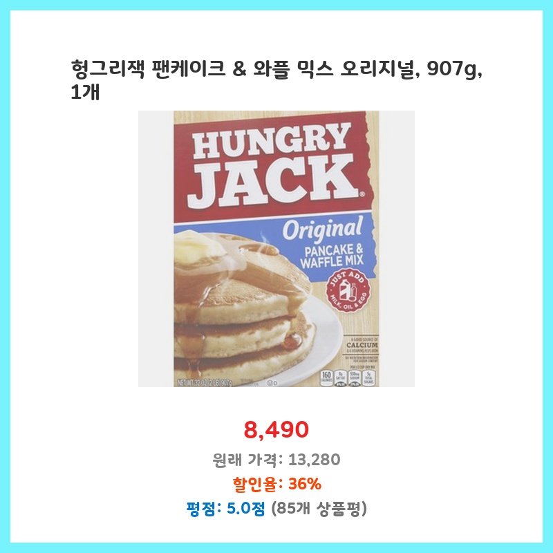 이 팬케이크와 와플 믹스는 아침 식사를 빠르고 쉽게 만들어 주는 편리한 옵션입니다. 907g의 대용량으로 가족이나 친구들과 공유할 수 있으며, 부드럽고 푹신한 팬케이크와 와플을 만들어 줍니다. 또한 믹스에 들어 있는 재료가 간편하여 따뜻한 물만 넣으면 되는 것도 장점입니다.