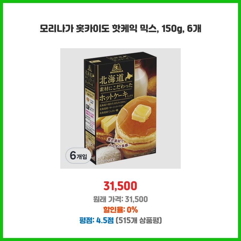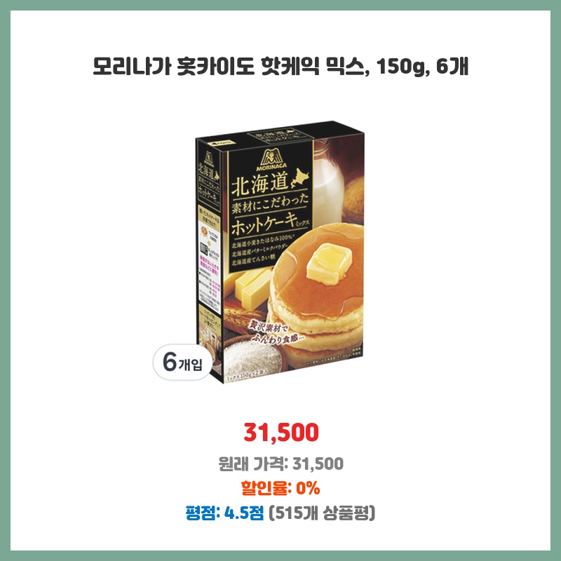 모리나가 홋카이도 핫케익 믹스, 150g, 6개