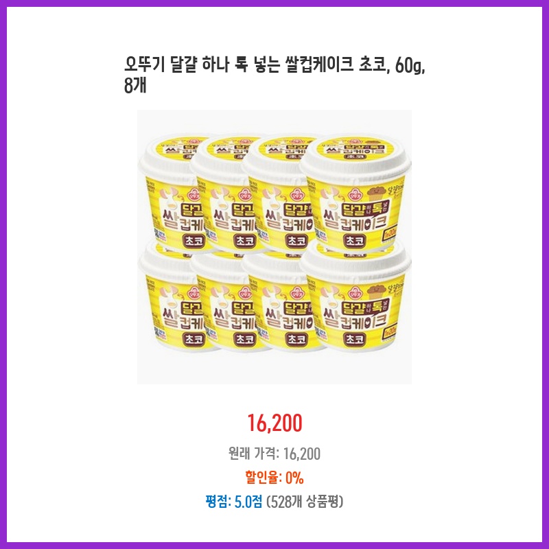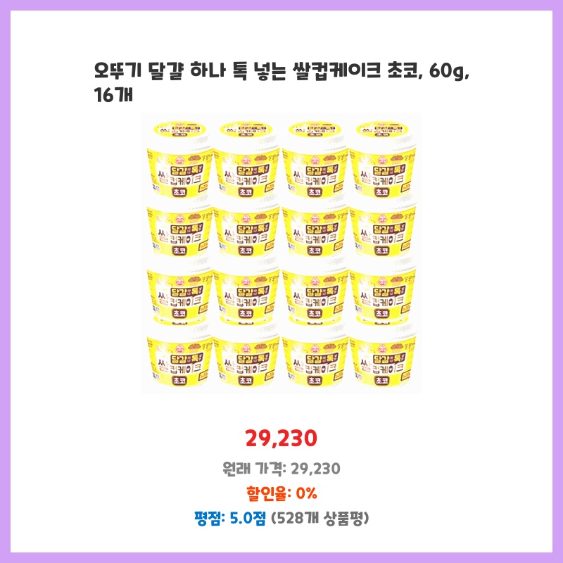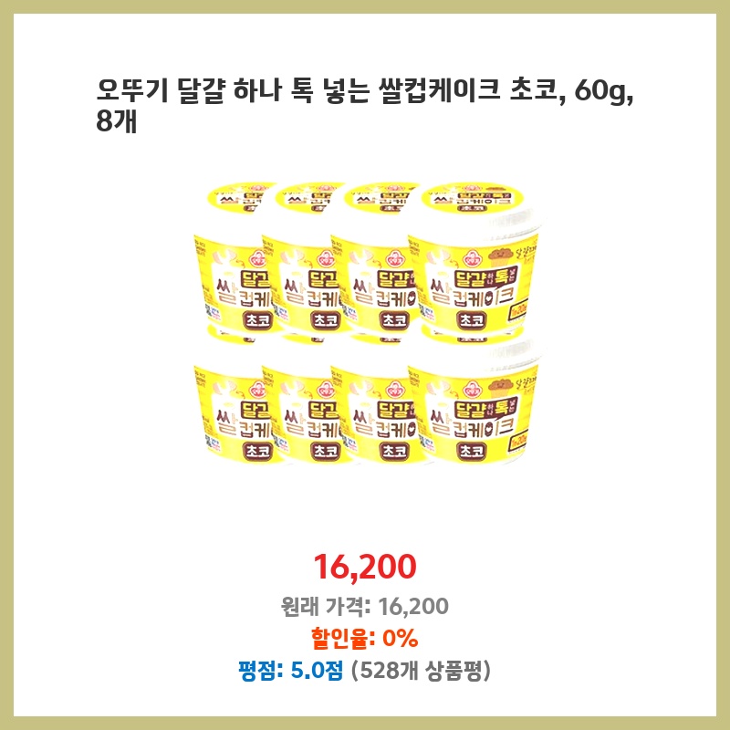 오뚜기 달걀 하나 톡 넣는 쌀컵케이크 초코, 60g, 16개