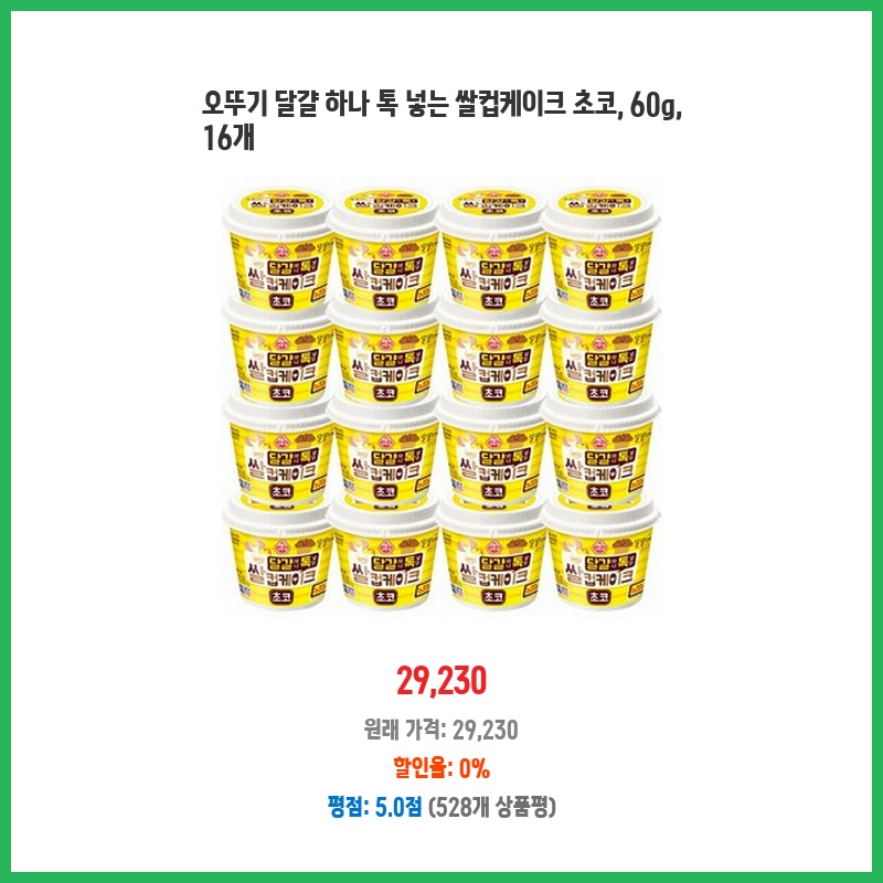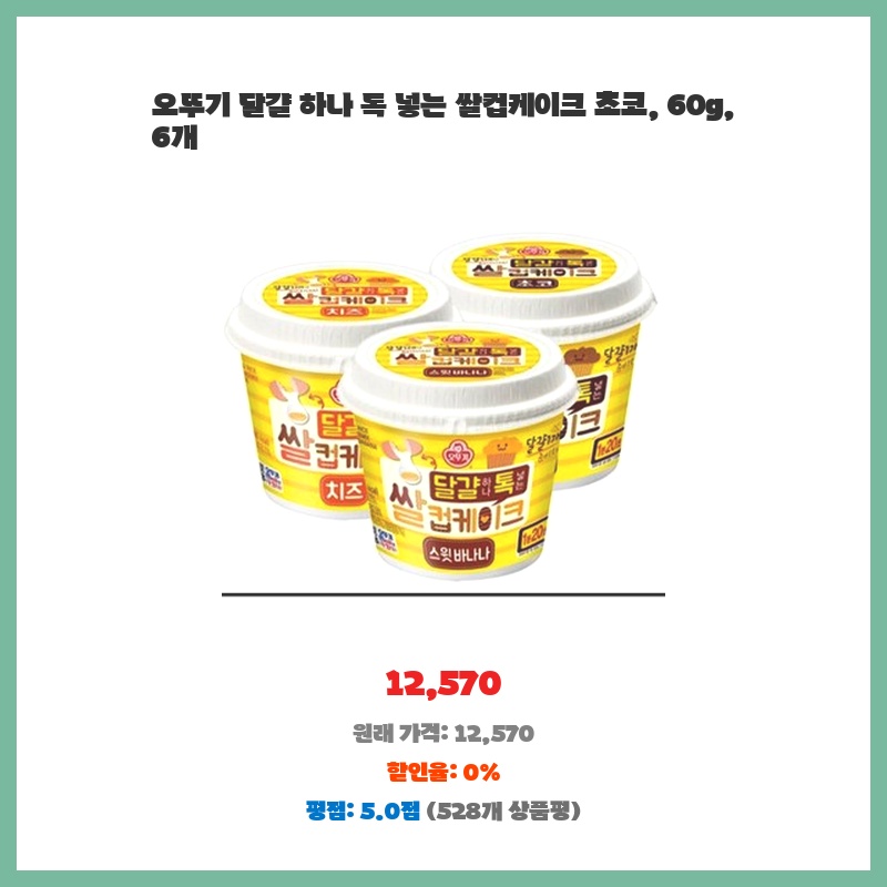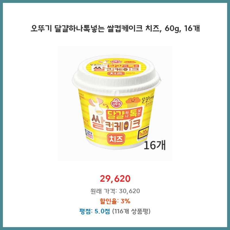 오뚜기 달걀하나톡넣는 쌀컵케이크 치즈, 60g, 16개