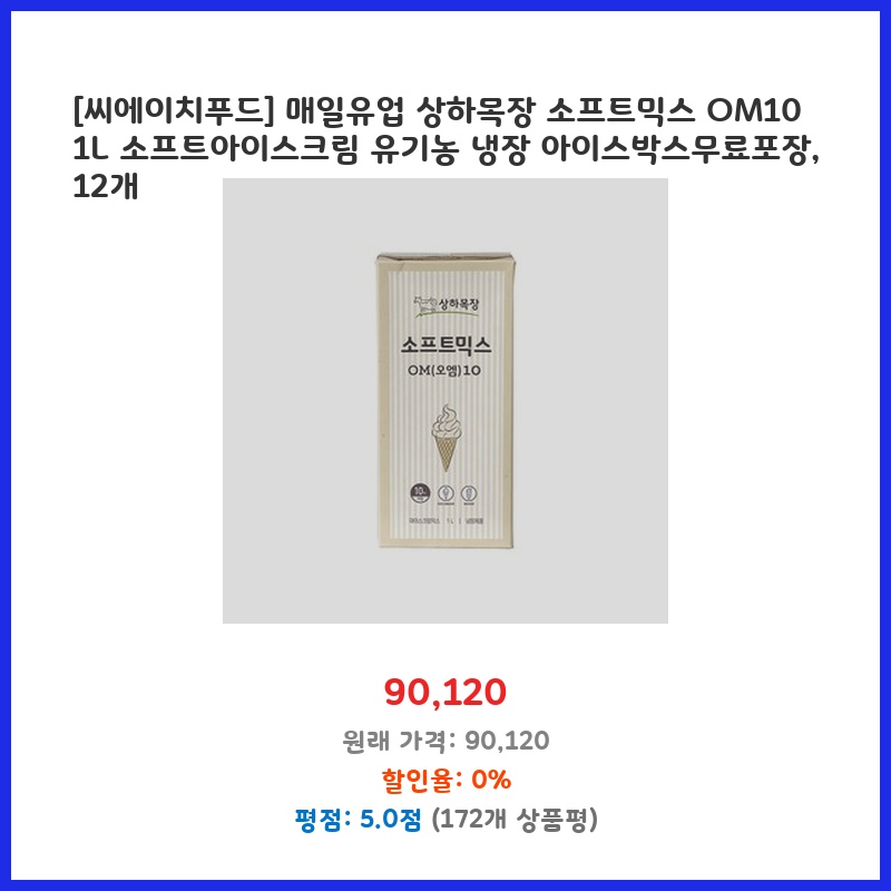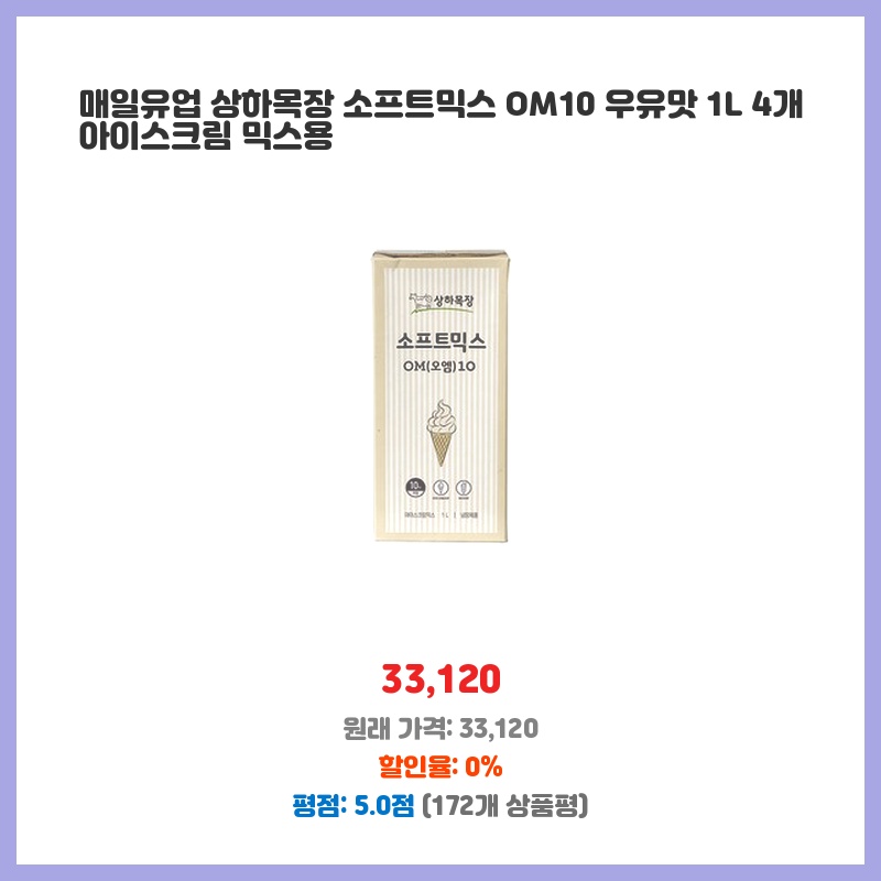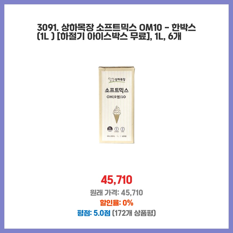 상하목장, OM10, 아이스크림믹스, 우유맛, 15개