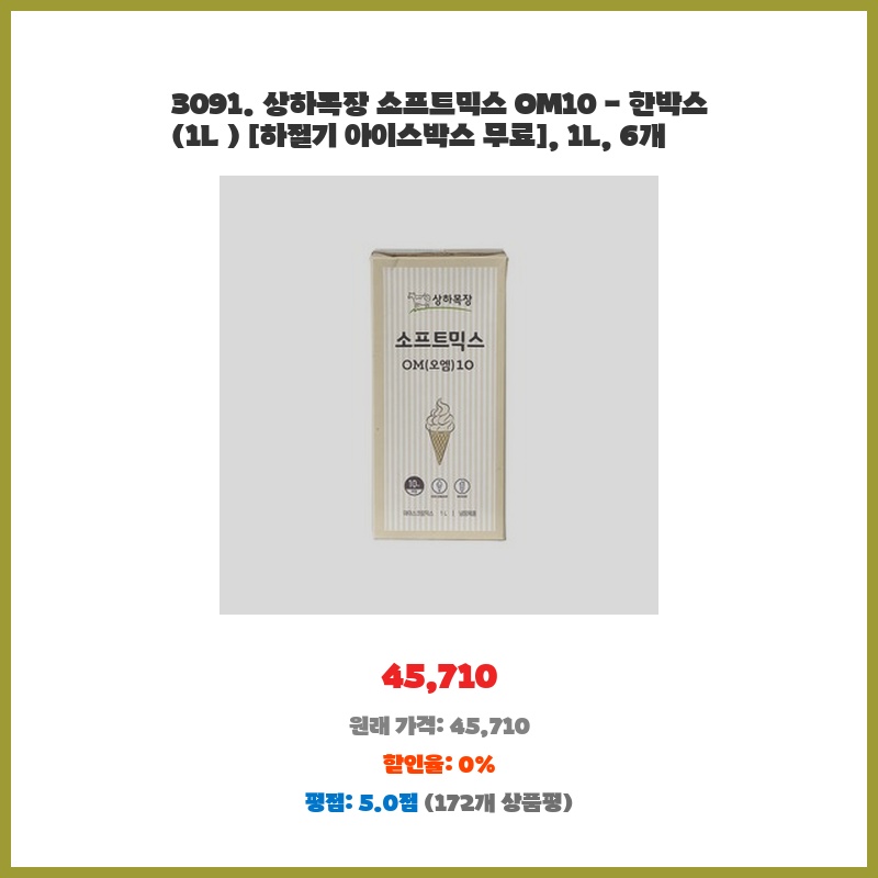 3091. 상하목장 소프트믹스 OM10 - 한박스 (1L ) [하절기 아이스박스 무료], 1L, 6개